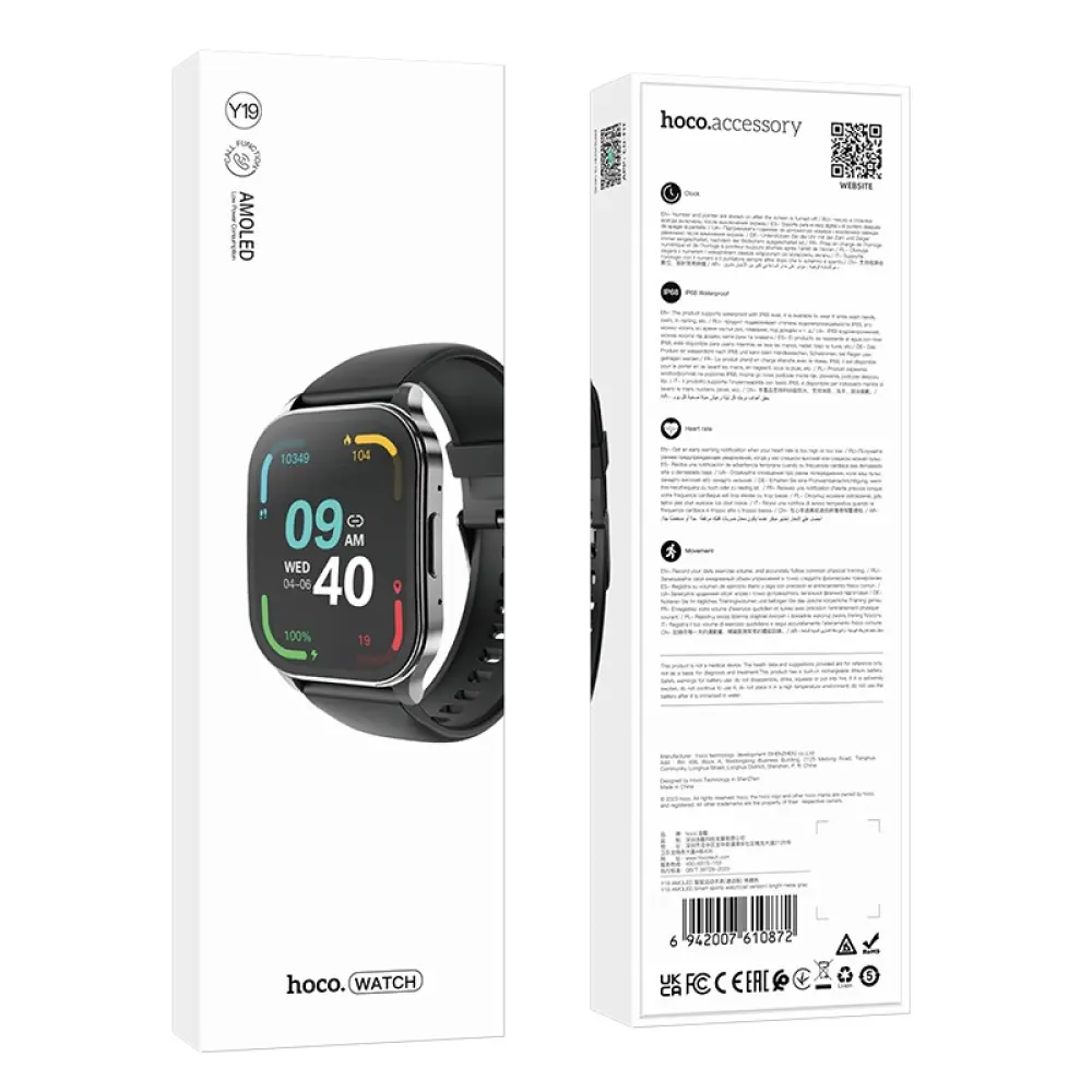 ιαθέτοντας μια εντυπωσιακή οθόνη AMOLED 1,96 ιντσών, το Smartwatch Hoco Y19 προσφέρει μια κρυστάλλινη καθαρή οθόνη, παρέχοντας μια ζωντανή οπτική εμπειρία κατά την πλοήγηση σε διάφορες εφαρμογές, ειδοποιήσεις και μετρήσεις υγείας.